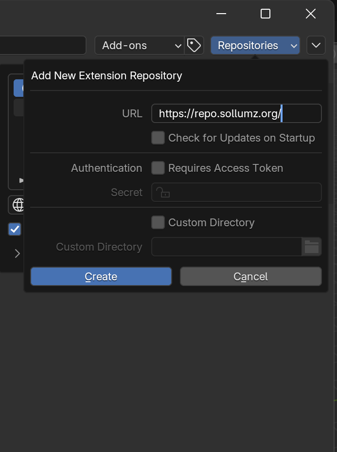 https://repo.sollumz.org/dansURL(trouvable sur https://docs.sollumz.org/getting-started/installation puis cliquer surCreate
