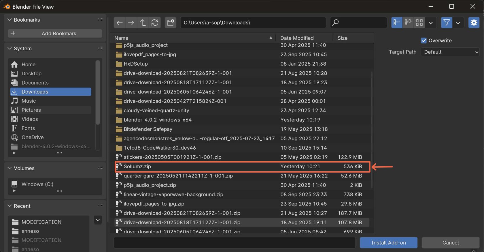 Sollumz est un addons Blender open source (sous licence GNU) dévellopé par Skylumz, Colton Fox et alexguirre. https://github.com/Sollumz/Sollumz. Cette addons vas nous permettre d'ouvrir et d'exporter des modèles 3D au format propriétaire utilisé par GTA V. Vous avez deux options pour installer Sollumz !