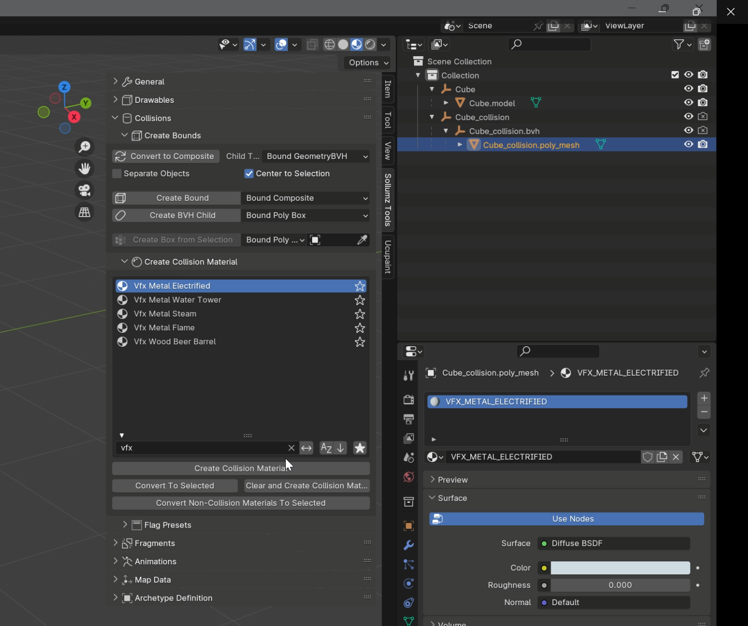 Collisions>Create Collision Material> prendre par exempleVfx metal electrified> puisCreate Collision Material