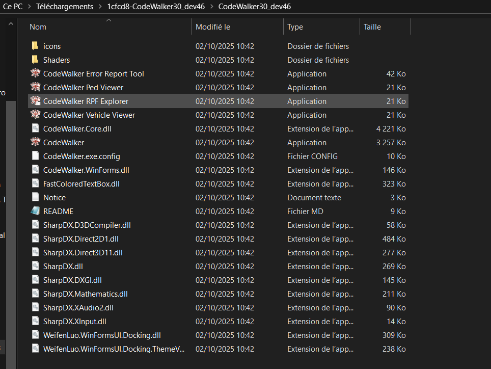 Dans le fichier il y aura plusieur .exe, lancez CodeWalker RPF Explorer.exe