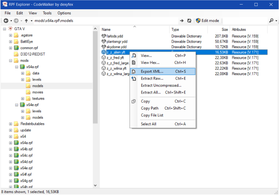 Depuis code walker, vous pourrez ensuite exporter les fichier (notamment les .ytf) en .xml, ils seront ensuite importable sur blender.